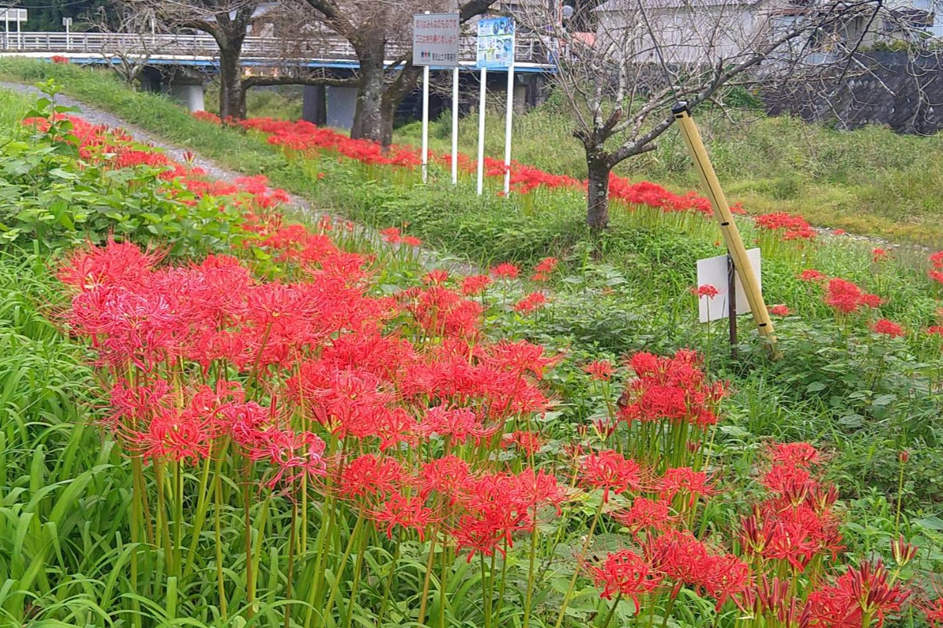 切通し橋を左折して、川に沿って咲き誇っていますので、充分に鑑賞できると思います。