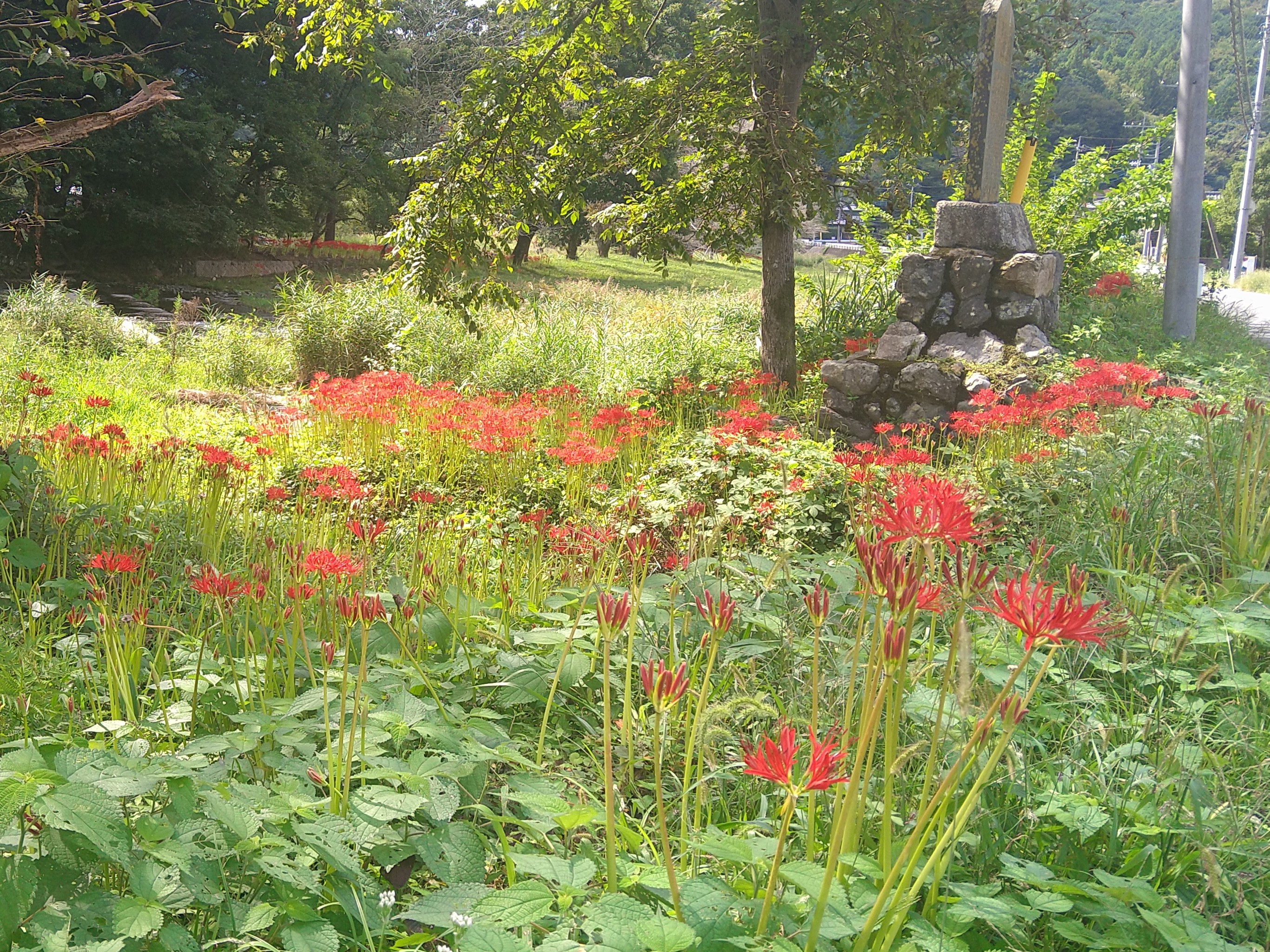 記念碑よりさらに奥ですと、群生しているところがあり、そこも七分咲き程度