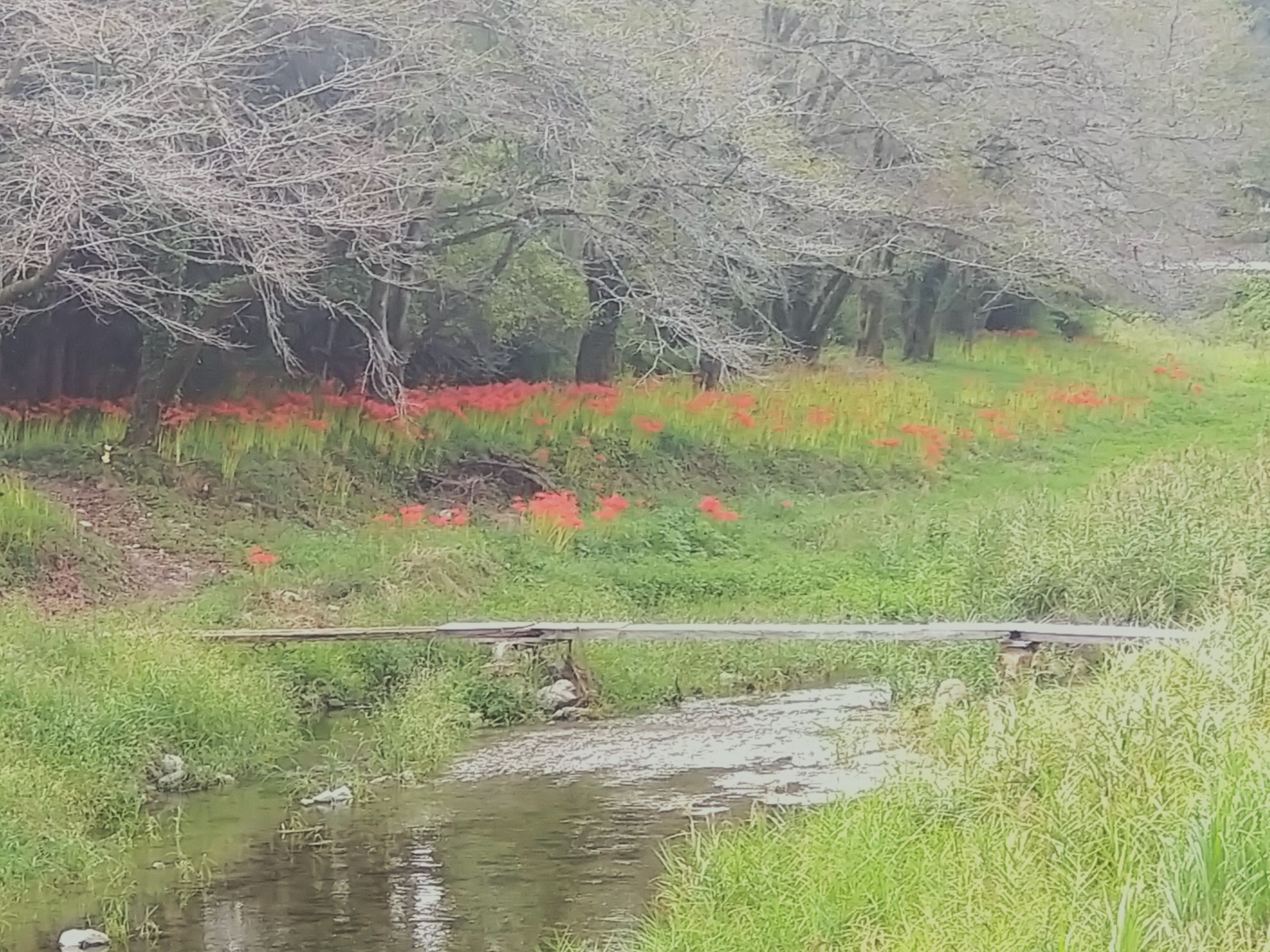 切通し橋の麓あたりはまだ三分咲き程度