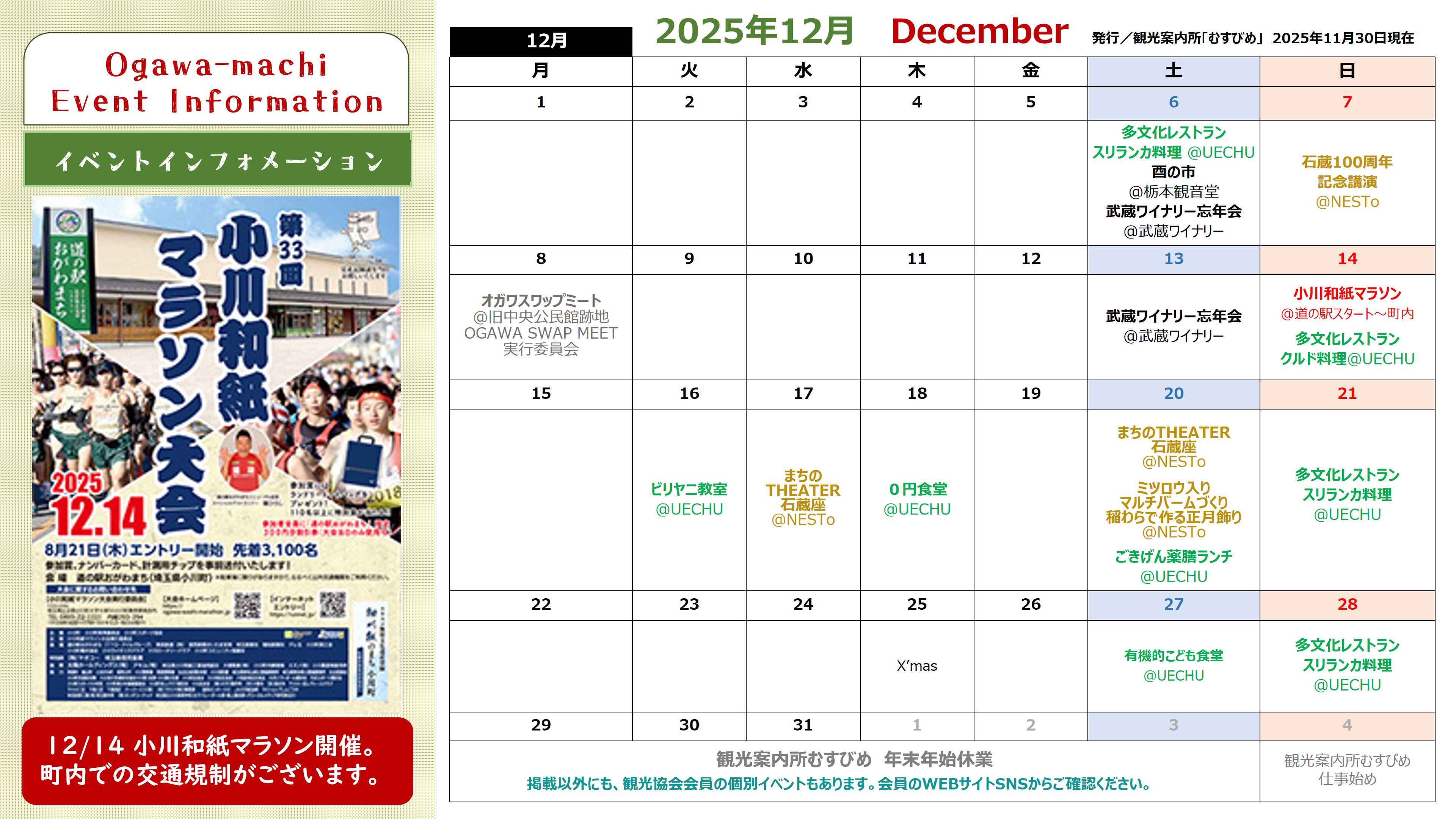 ▶ 観光案内所「むすびめ」は12月29日(月)~1月3日(土)まで年末年始休業