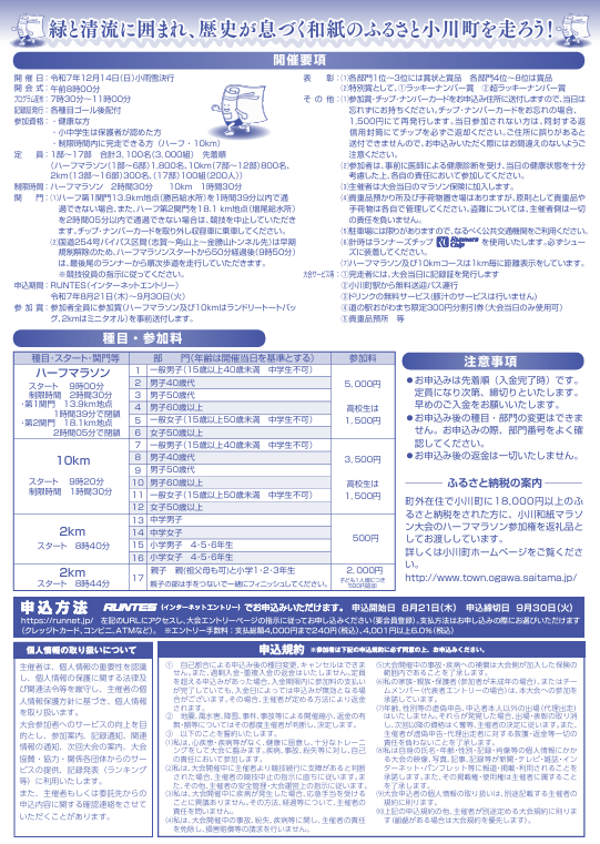 ・小川和紙マラソン大会実行委員会(小川町教育委員会内)0493-72-1221