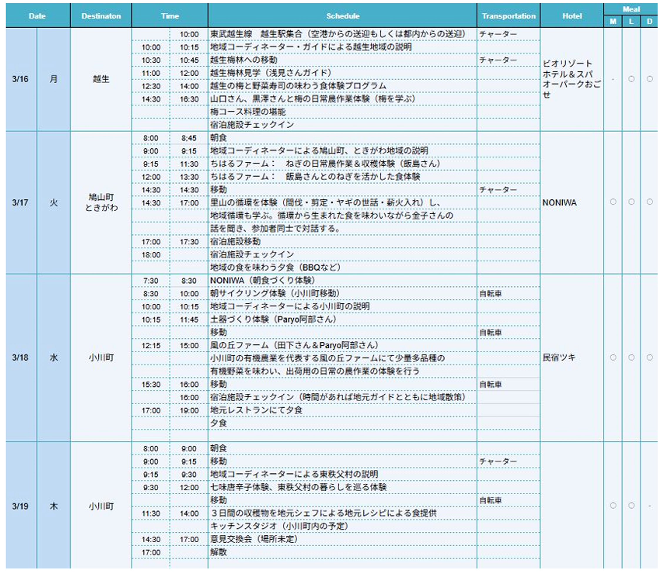本FAMツアーは、埼玉県比企・越生地域を舞台に地域独自の「食と農」の企画商品化に向けた現地視察・意見交換を行うことを目的として実施します。地域の体験コンテンツや受入体制を実際にご覧いただき、商品造成に向けたご意見を頂戴したく存じます。