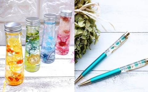 体験料:和紙とこうぞレースのハーバリウム 800円/和紙のハーバリウムボールペン 1,200円