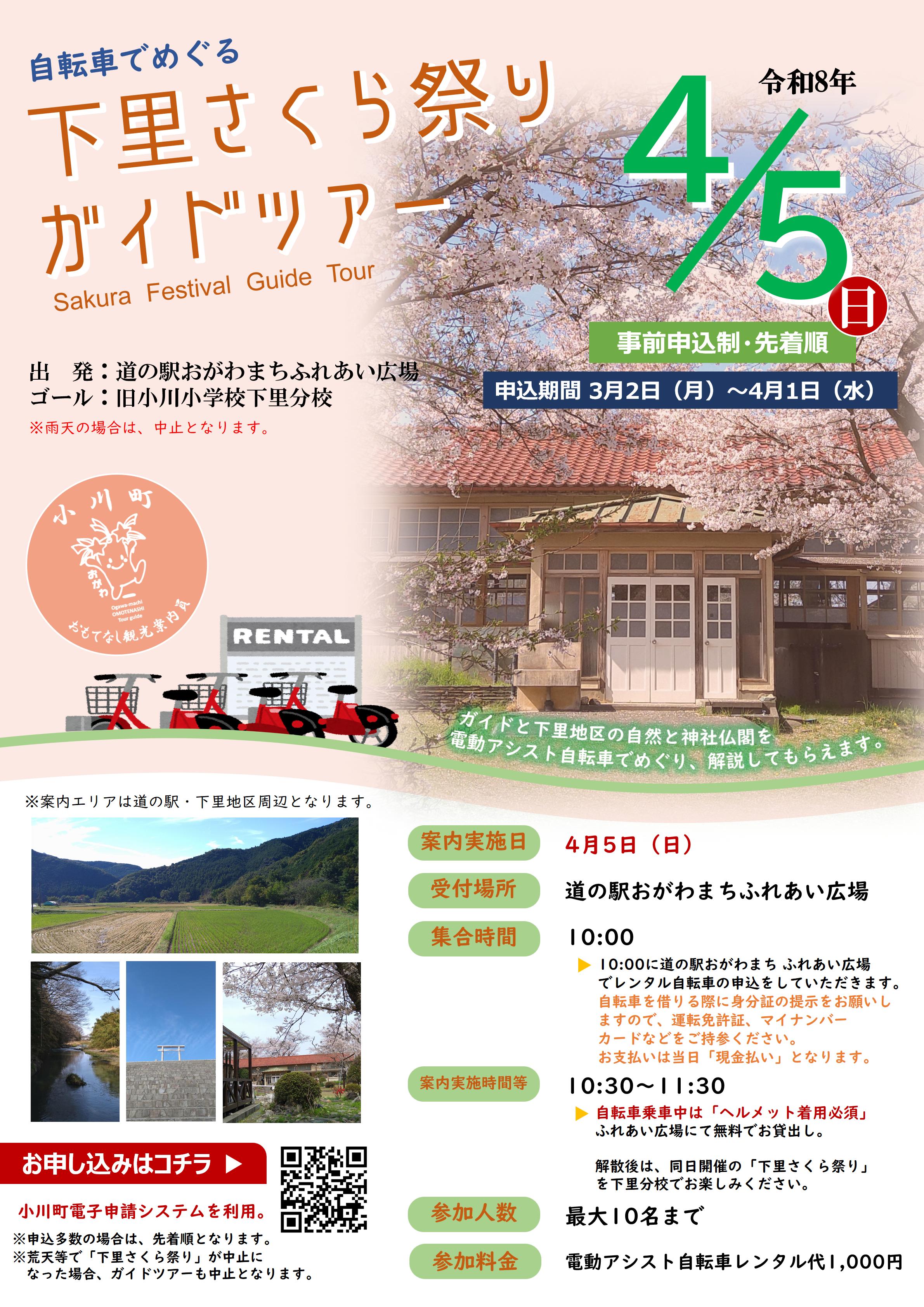 下里さくら祭りガイドツアー(自転車)を開催します!