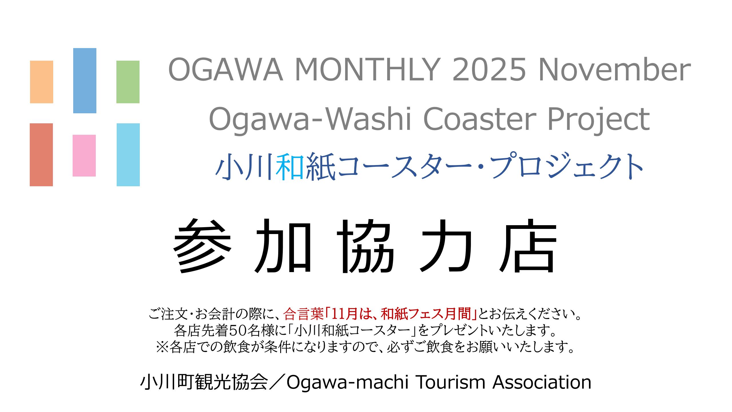 協力参加店で飲食して、合言葉を言っていただけたお客様に、小川和紙のコースターを1枚プレゼント!